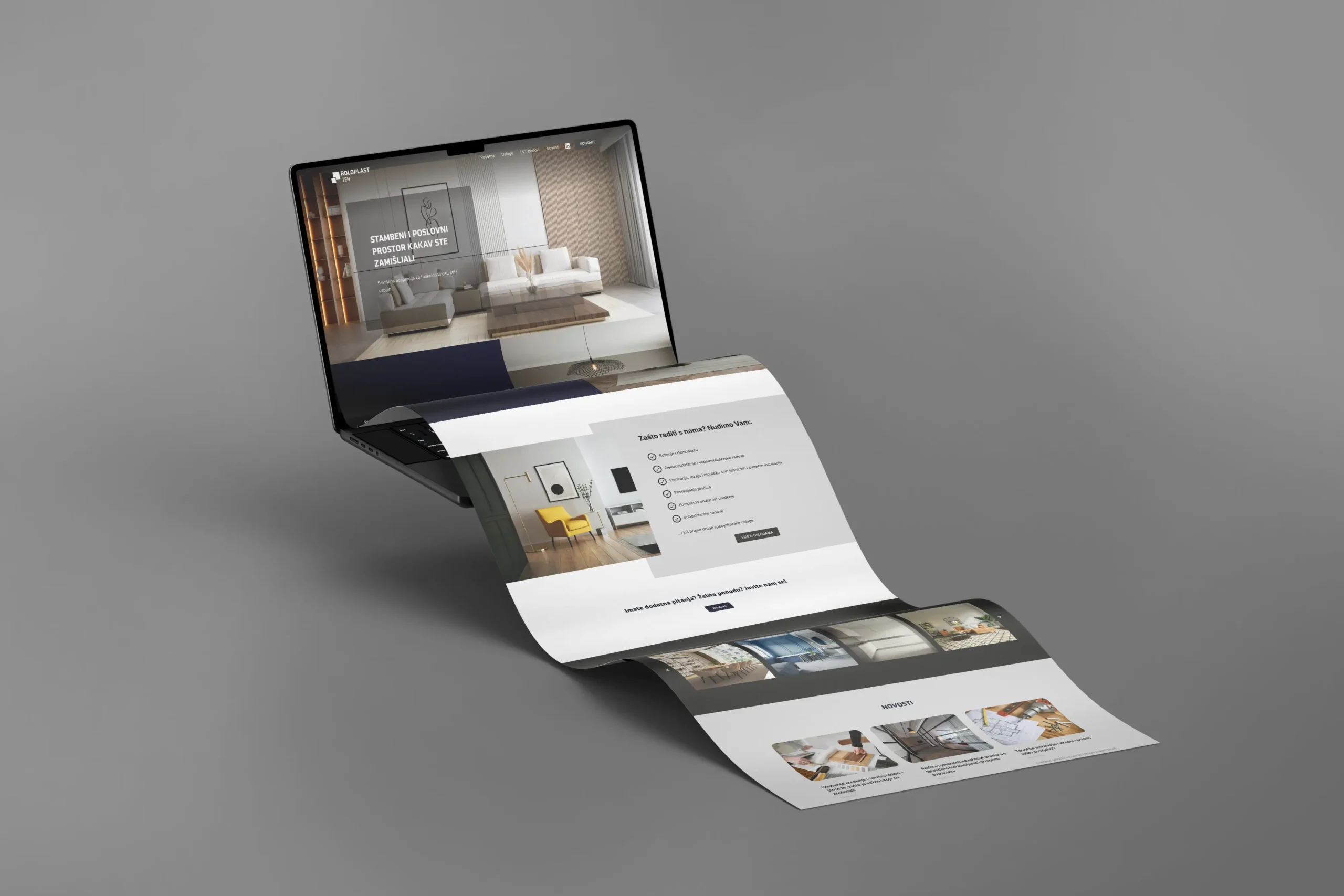 Roloplast TEH specializes in complex adaptations of commercial and residential spaces. The primary challenge was to take a vast array of technical services, ranging from electrical installations to complete interior renovations, and organize them into a cohesive, user-friendly digital platform. The goal was to build professional credibility and create a seamless path for potential clients to request quotes.