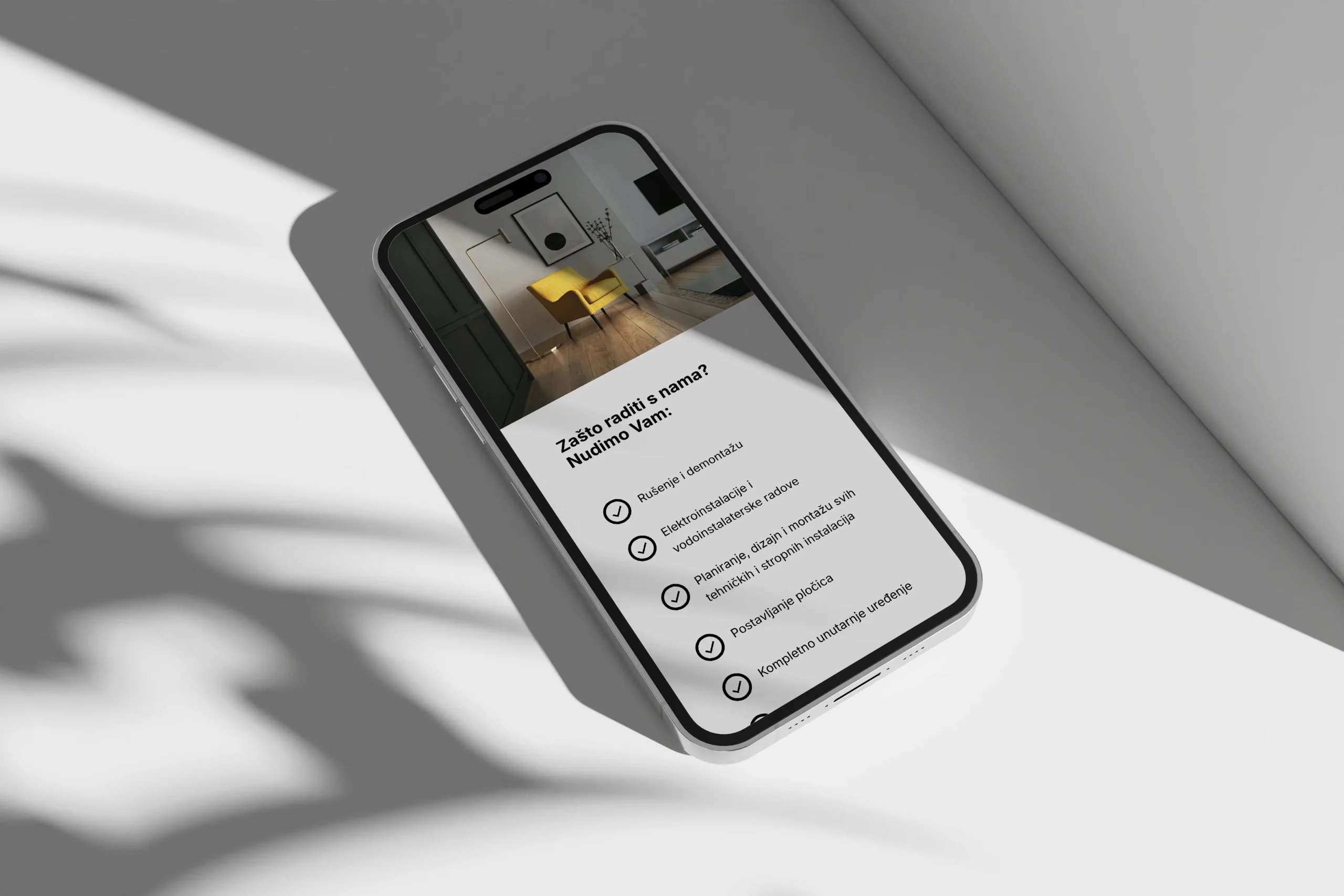 The design is fully optimized for mobile devices, ensuring that architects and site managers can access service details and contact information easily while on the go.